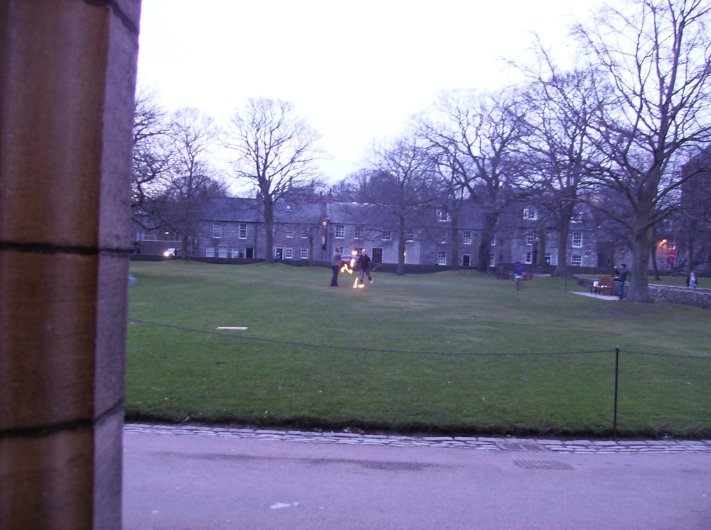guys juggling fire in the quad.
