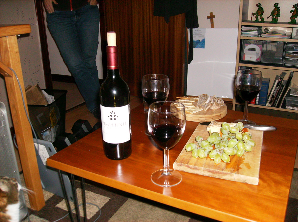 shared a lovely bottle of Australian wine they brought back from their