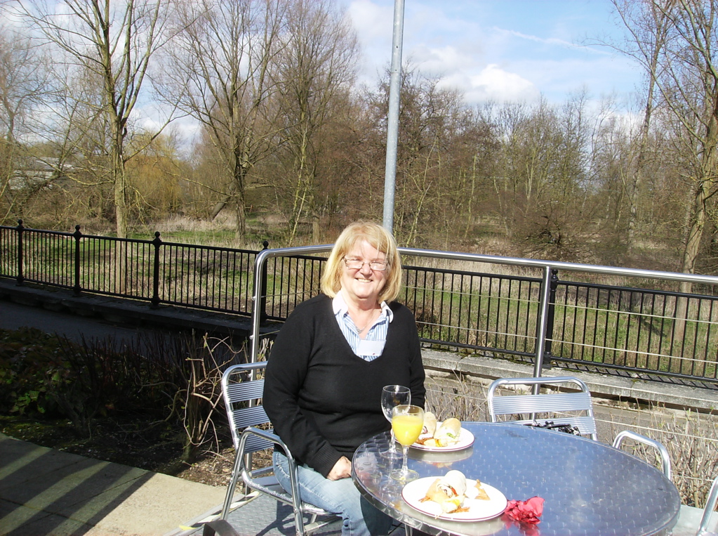 Anglia Ruskin University in Chelmsford. this is Pam on the patio.