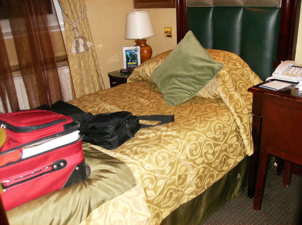 of the bed was at the wall so the suitcase had to go next to the bed after