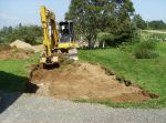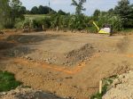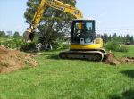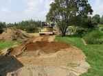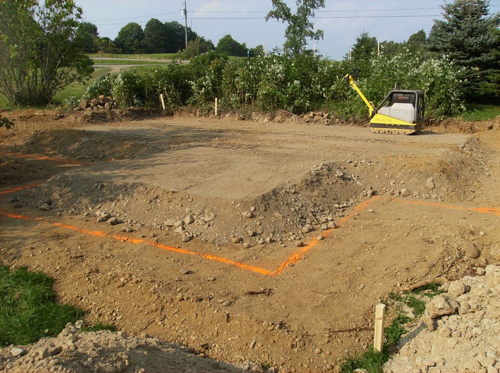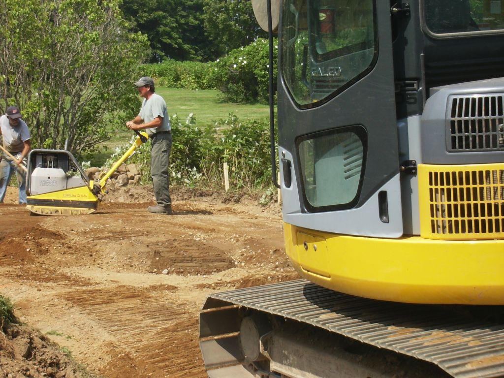 They started carving their way toward the house creating a base for a driveway; meanwhile, they tamped down the fill.
