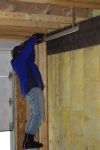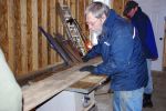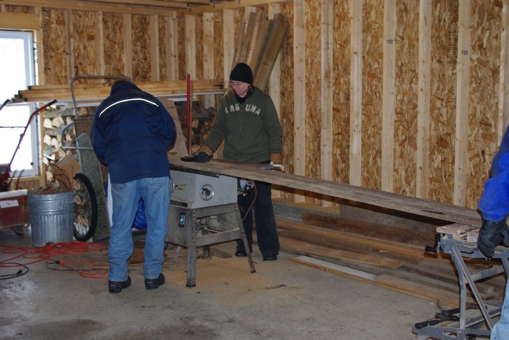 We began by moving Momo out and the table saw in, and laying the boards