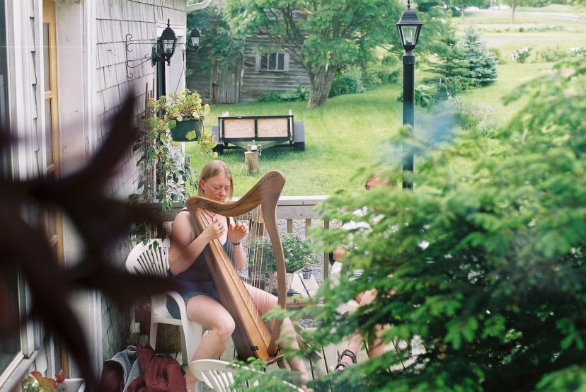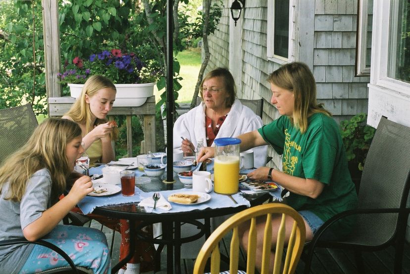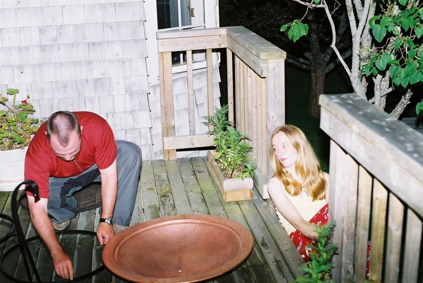 the deck. In the afternoon, after the celebration, some people sat on the front
