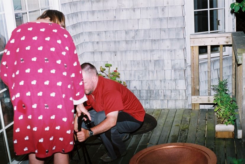 In order to attend the celebration, the Wyatts drove down from the 'fax after Jif played a wedding Saturday afternoon. They arrived, about a quarter to eleven at night, bearing gifts -- a barbecue lighter for Father's Day and a brass "firepit" which took