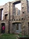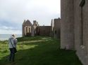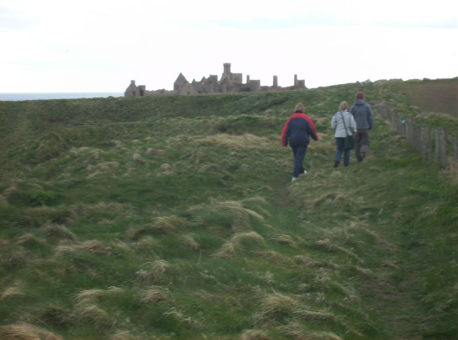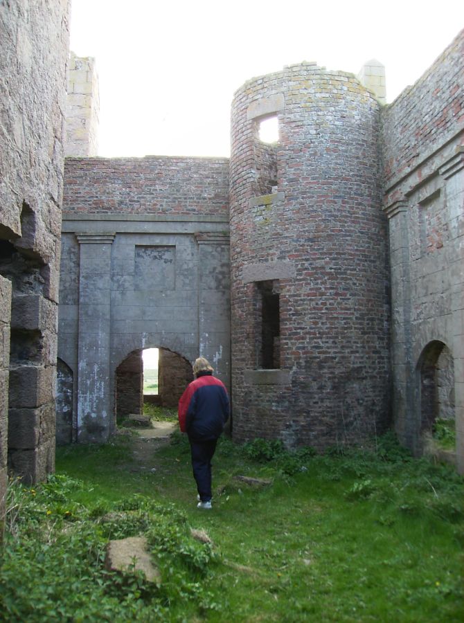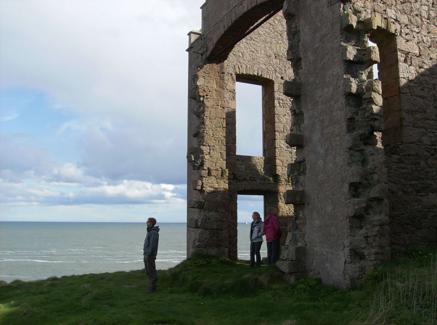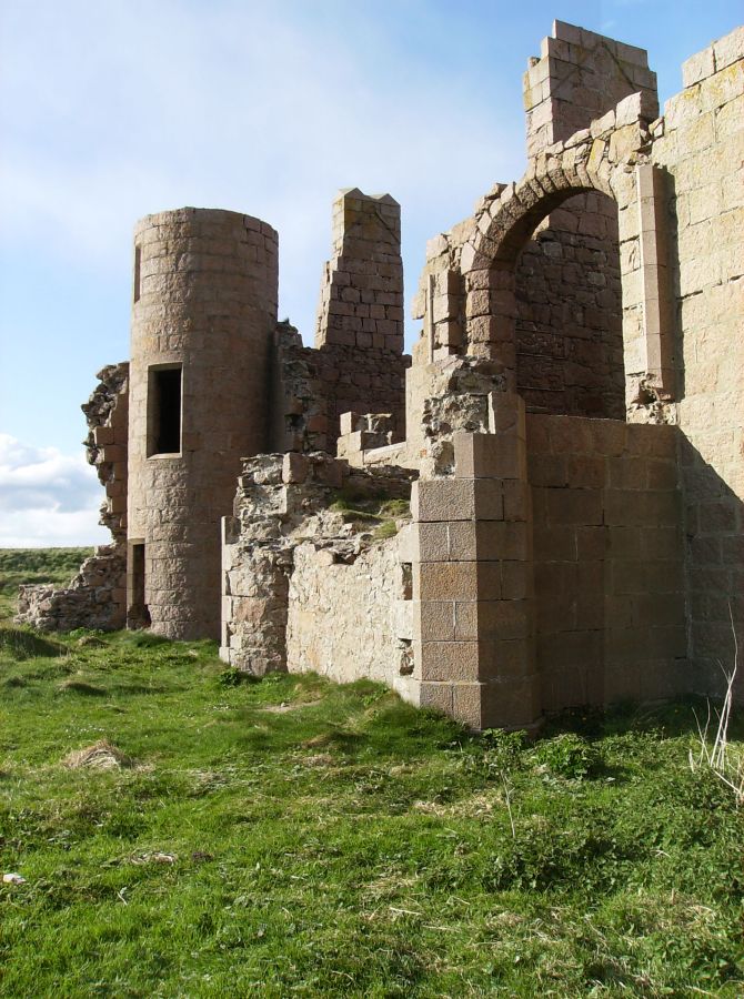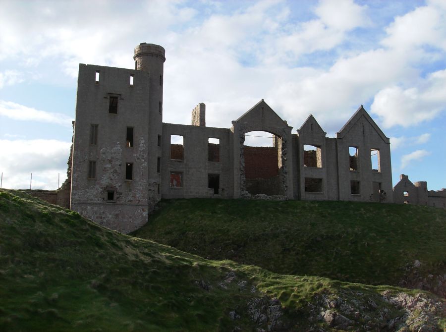 When we returned to the house we found coffee and tea in the drawing-room. Lady Errol was not there, being, as I supposed, engaged with her young family. There is a bow-window fronting the sea. . . . This room is ornamented with a number of fine prints, and with a whole length picture of Lord Errol, by Sir Joshua Reynolds. . . . Dr Johnson observed, the situation here was the noblest he had ever seen, better than Mount Edgecumbe, reckoned the first in England; because, at Mount Edgecumbe, the sea is bounded by land on the other side, and, though there is there the grandeur of a fleet, there is also the impression of there being a dock-yard, the circumstances of which are not agreeable. At Slains is an excellent old house. The noble owner has built of brick, along the square in the inside, a gallery, both on the first and second story, the house being no higher; so that he has always a dry walk, and the rooms, to which formerly there was no approach but through each other, have now all separate entries from the gallery, which is hung with Hogarth’s works, and other prints. We went and sat a while in the library. There is a valuable numerous collection. It was chiefly made by Mr Falconer, husband to the late Countess of Errol in her own right. This earl has added a good many modern books.. . . I had a most elegant room; but there was a fire in it which blazed; and the sea, to which my windows looked, roared; and the pillows were made of the feathers of some sea-fowl, which had to me a disgreeable smell: so that, by all these causes, I was kept awake a good while. I saw, in imagination, Lord Errol’s father, Lord Kilmarnock (who was beheaded on Tower Hill in 1746), and I was somewhat dreary. But the thought did not last long, and I fell asleep. -- Journal of a Tour to the Hebrides