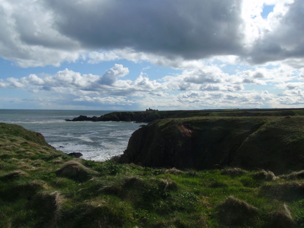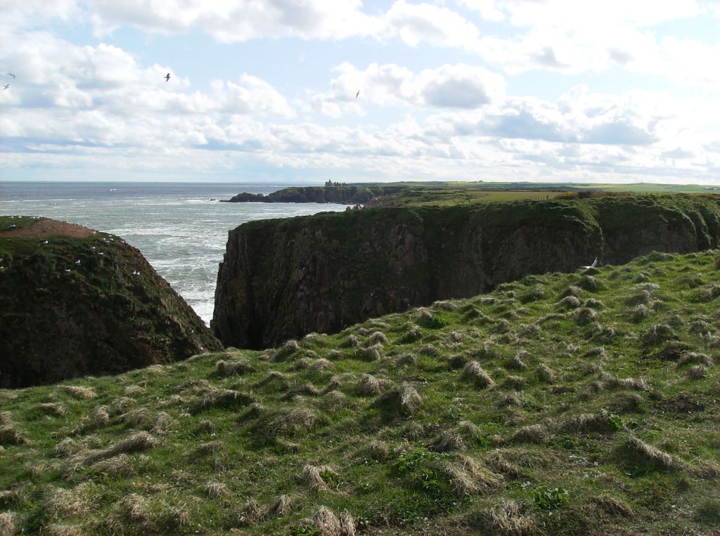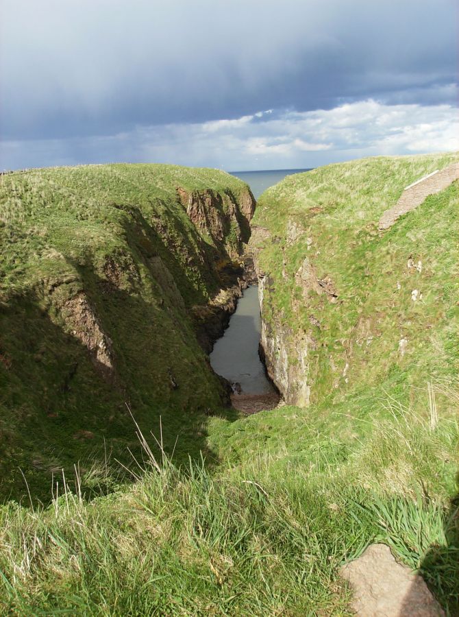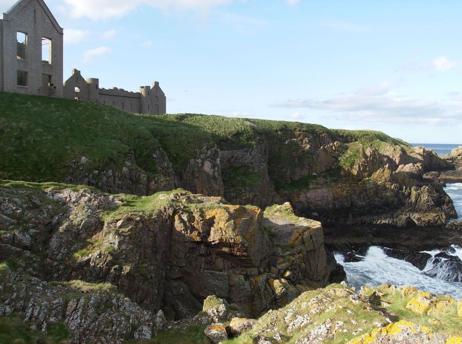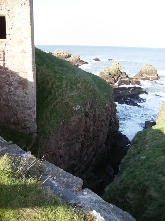 "We came in the afternoon to Slanes* Castle, built upon the margin of the sea, so that the walls of one of the towers seem only a continuation of a perpendicular rock, the foot of which is beaten by the waves. To walk round the house seemed impracticable. From the windows the eye wanders over the sea that separates Scotland from Norway, and when the winds beat with violence must enjoy all the terrifick grandeur of the tempestuous ocean. I would not for my amusement wish for a storm; but as storms, whether wished or not, will sometimes happen, I may say, without violation of humanity, that I should willingly look out upon them from Slanes Castle." -- Samuel Johnson, A Journey to the Western Isles of ScotlandFrom the Bullers